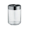 Julieta-Glas Alessi Design Lluís Clotet. Luftdichtes Glasgefäß mit Deckel aus 18/10 Edelstahl. Fassungsvermögen 100 cl, Durchmesser 10,5 cm, Höhe 15,8 cm.