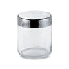 Furnierglas Alessi, Design Patricia Urquiola. Luftdichtes Glasgefäß. Deckel aus Edelstahl 18/10 mit Prägedekor. Fassungsvermögen 75 cl, Durchmesser 10,5 cm, Höhe 12,3 cm.