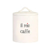 Barattolo in gres Il mio caffè, Simple Day. La garanzia è un anello che ha un profilo ad "L", il barattolo è sigillato dalla parte orizzontale che è appoggia sull'orlo del barattolo sigillandolo. La tacca sul bordo è necessaria per evitare la condensa e non pregiudica la conservazione del contenuto. Il lavaggio è possibile anche in lavastoviglie: ha una temperatura di lavaggio max. 50° e non può essere utilizzato con acque aggressive o aggressive. Finitura organica. Dimensioni D 12 x 17 cm.